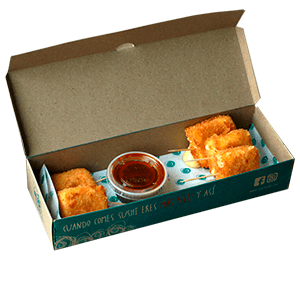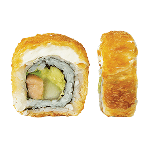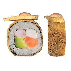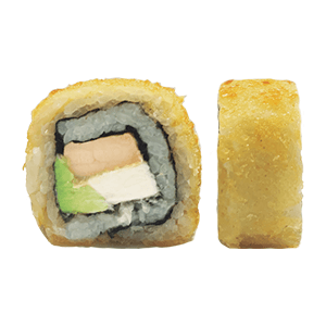 Por dentro: salmón, pepino y aguacate. Por fuera: philadelphia. Empanizado.(293 gr)
