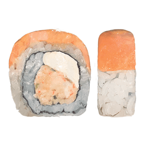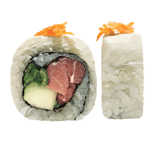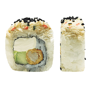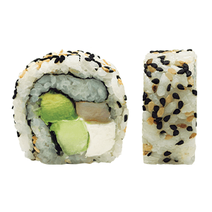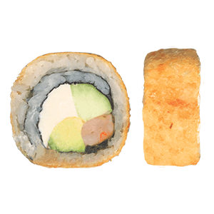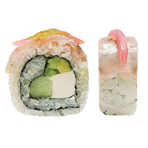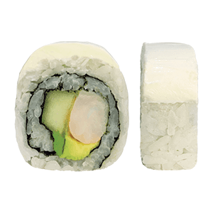Por dentro: camarón, pepino y aguacate. Por fuera: rodeado de queso crema. (300 gr)