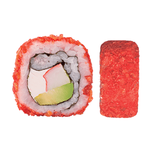 Por dentro: camarón empanizado, aguacate y queso crema. Por fuera: cubiertos de cheetos flamin hot. (280 gr)