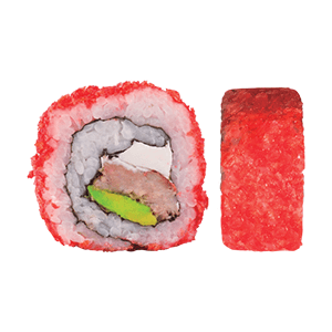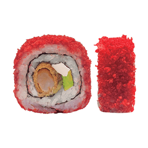 Por dentro: camarón, pepino y queso crema. Por fuera: cubierto de camarones roca. Empanizado. (260 gr)