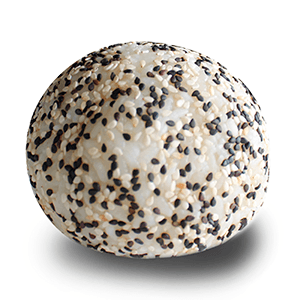 Mega bola de arroz rellena de camarón, aguacate, pepino y queso crema, cubierta de ajonjolí. (Fríos)